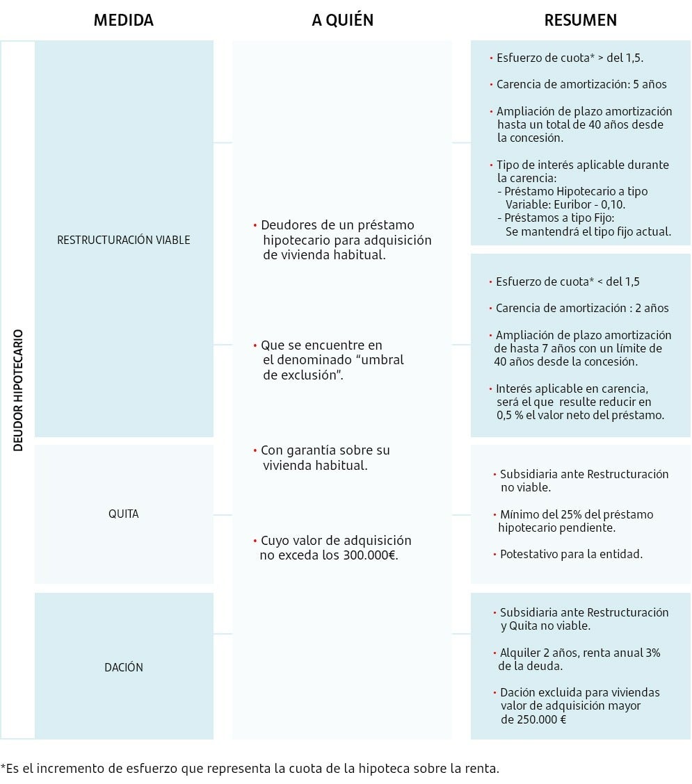 - 1 a 7: Per aplicar les mesures de quitació, dació en pagament i lloguer social.
