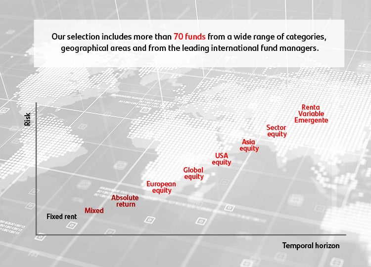 Thanks to this analysis, Banco Santander is able to offer you more than 70 investment funds from a wide range of categories and geographical areas, from leading international fund managers so that you can choose the ones that best suit your investment needs.