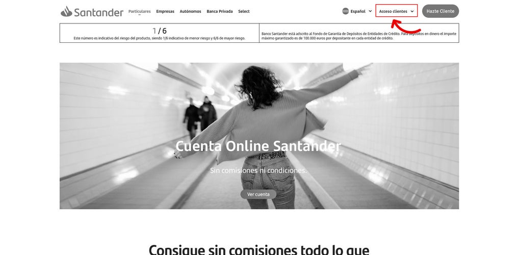 - En la parte superior derecha, encontrarás un desplegable con el texto "Acceso clientes ↓":