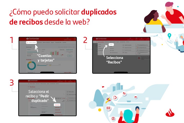 - Elige la cuenta en la que tienes domiciliado el recibo, busca entre los recibos el que te interese y haz clic en “Pedir duplicado”.
